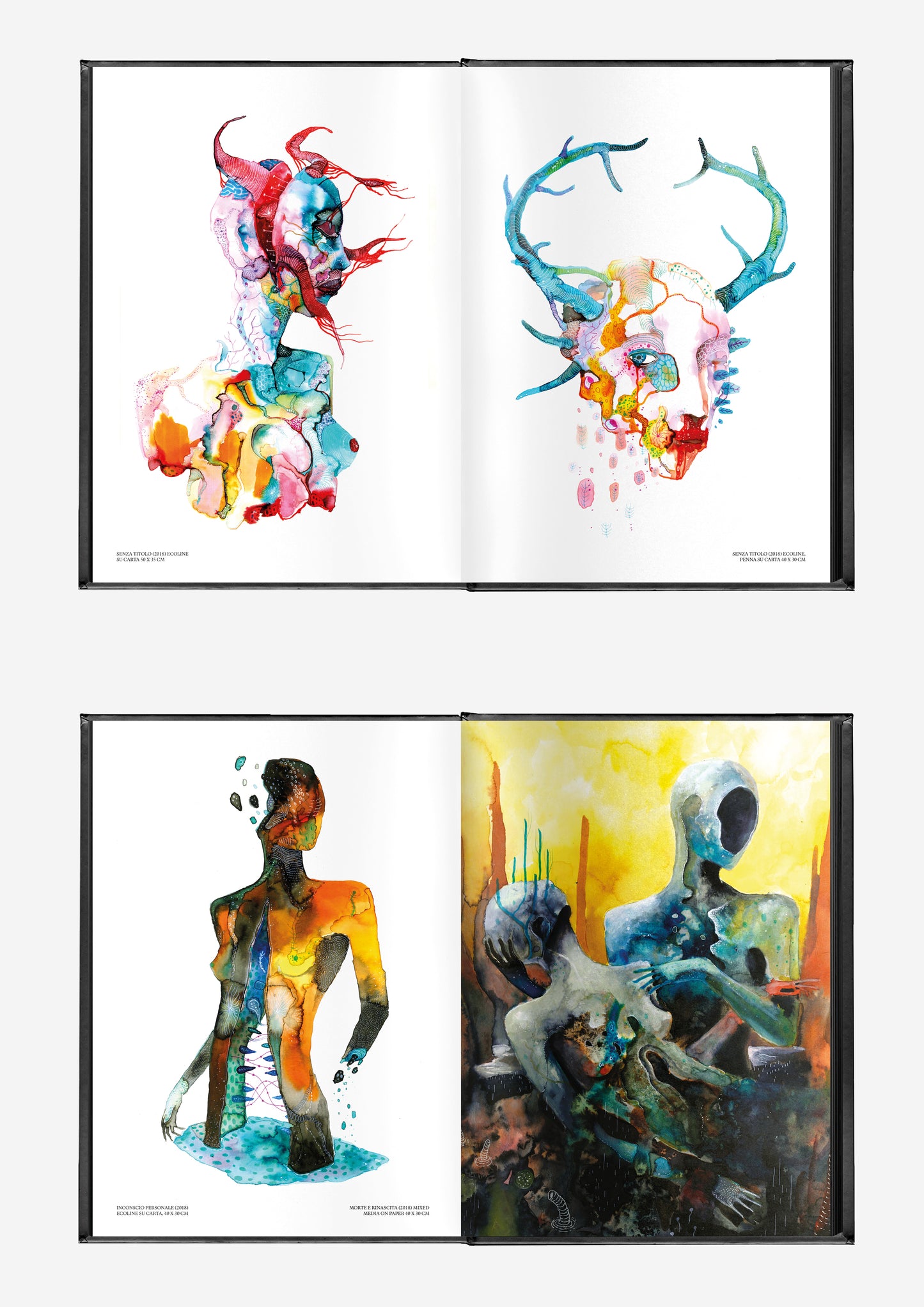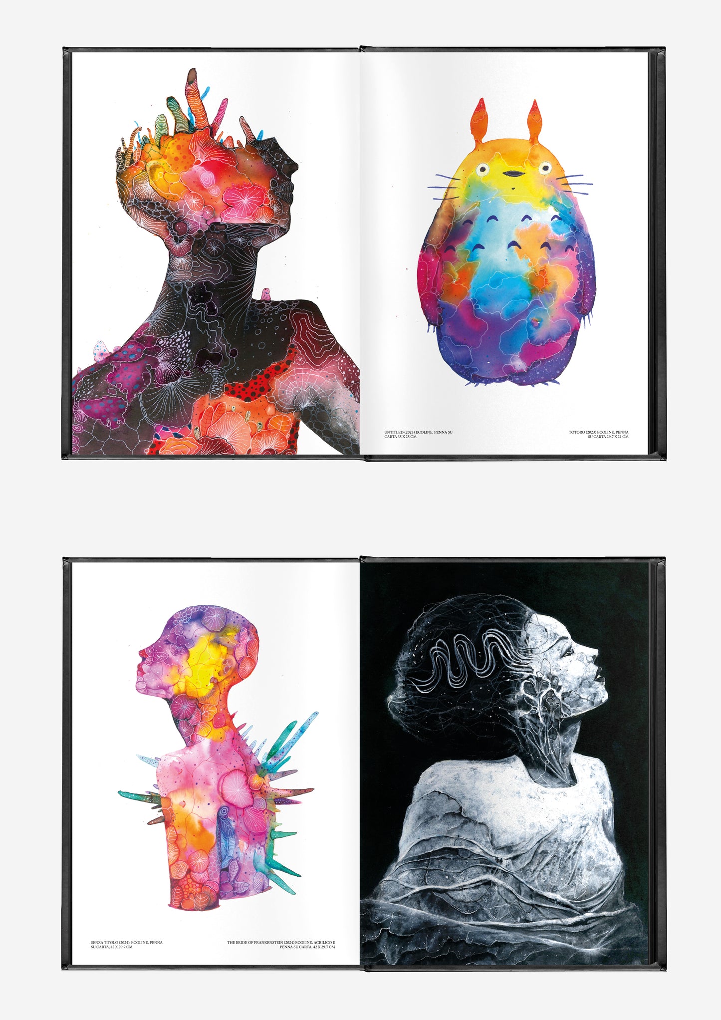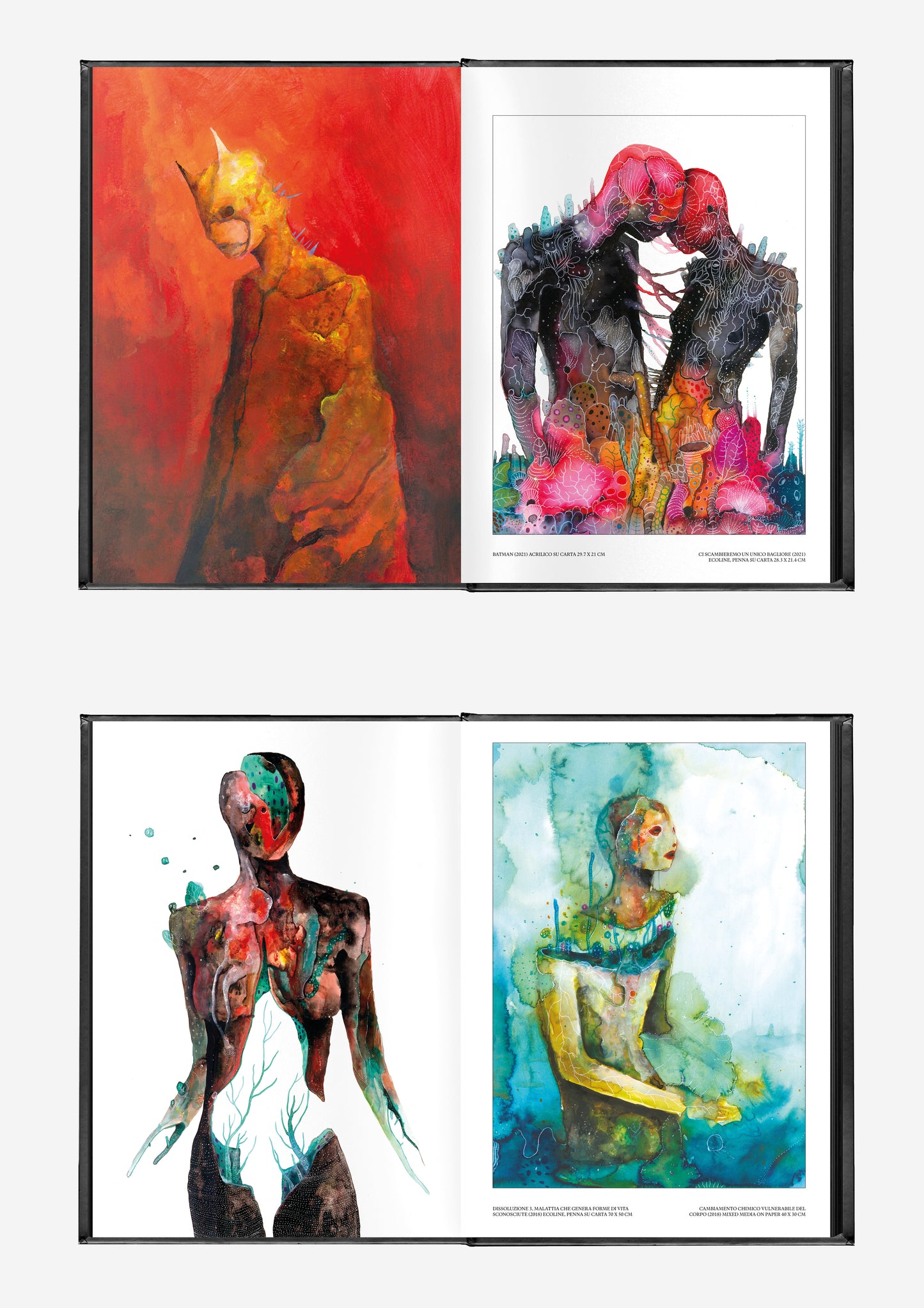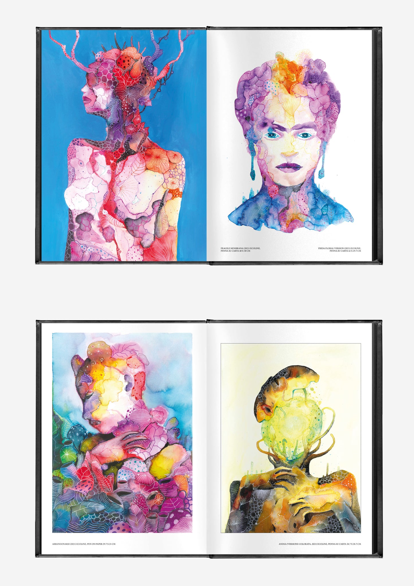 The collection captures the evolution of Le Nevralgie Costanti’s style—from delicate early watercolours to intense, layered compositions that push the limits of form and texture. Animae is not just an exhibition of visual art but an invitation to journey through themes of transformation, a must-have for enthusiasts of underground art and fantastical aesthetics.