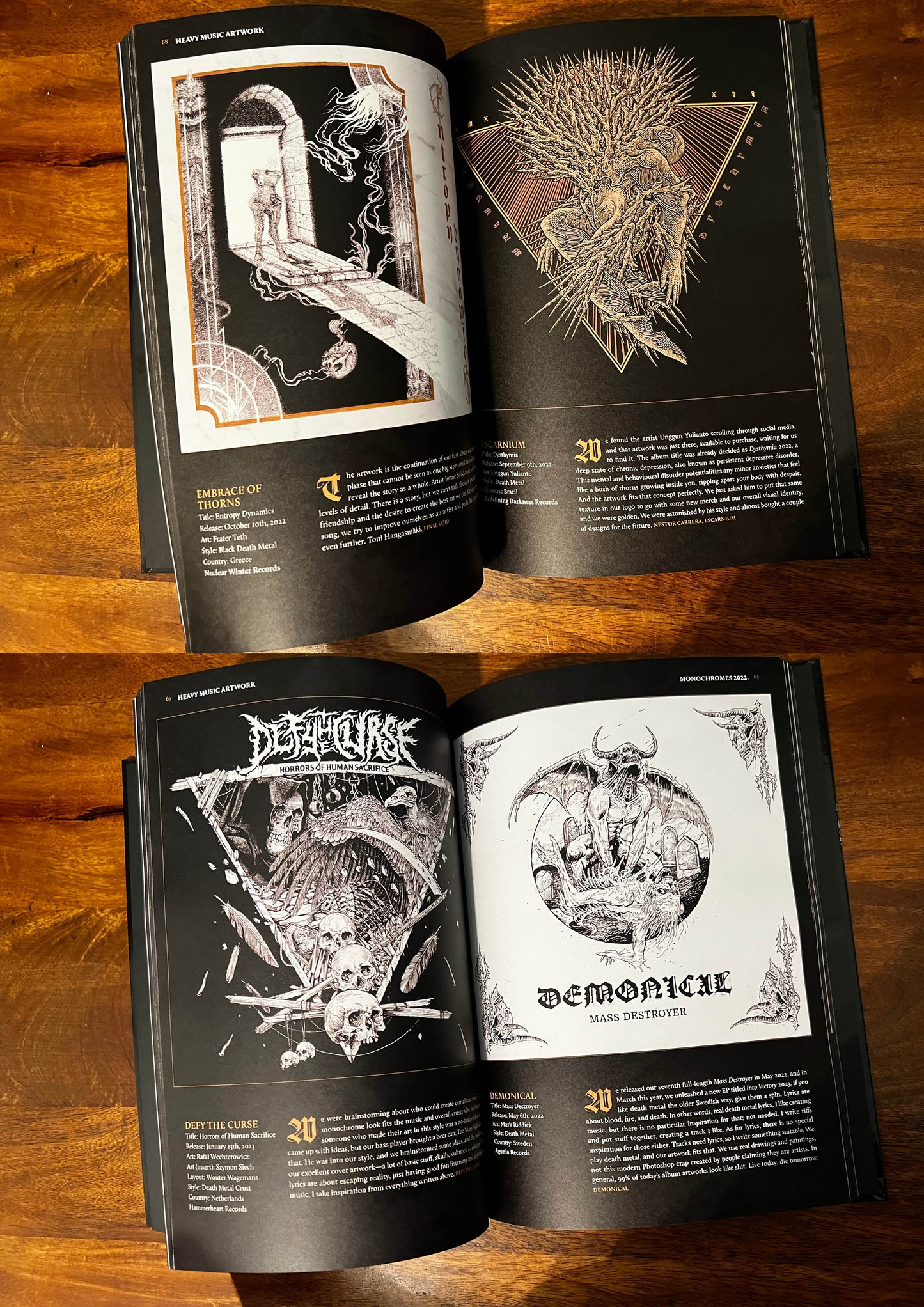Featured artists includes Doomsday Graphics, Business for Satan, Joscha Bauer, Credo quia Absurdum, Cold Poison, Serpent Above, Vhan Artworks, Karn, Jesus Lhysta, Comaworx, AMMO, Valnoir, Abstract Chaos Design, Artem Grigoryev, David Provan, Tuomas Valtanen, Mira Nedyalkova, Roberto Toderico, Raf The Might (Too Many Skulls), BMS Illustration, Iconartistry, Frater Teth, Jo Riou, CVSPE, Mat Cop1, Kai Uwe Faust, Abyssic Craft, Irrwisch Art design and more.